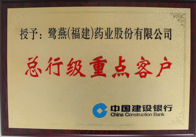 基于鷺燕企業優異的業績表現、穩健的經營管理風格和良好的資信情況,經過中國建設銀行的嚴格審評,近日,鷺燕(福建)藥業股份有限公司被認定為中國建設銀行“總行級重點客戶”。